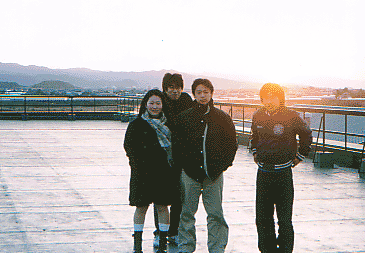 卒論提出前夜に4人で徹夜しました。朝日がまぶしい。