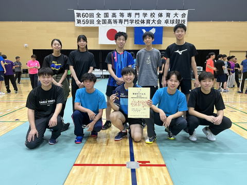 2025年度 第59回全国高専体育大会卓球競技 男子団体3位,男子準優勝(田所)
